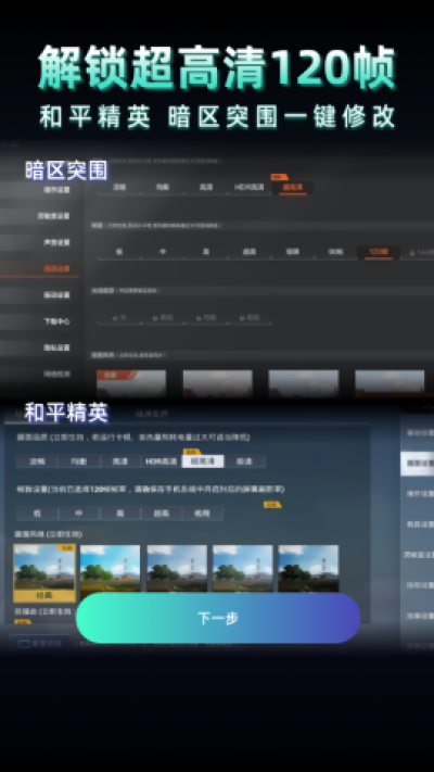 专为喜欢玩吃鸡的玩家而精心打造的,操作起来也很简单,一键就能设置好画质。