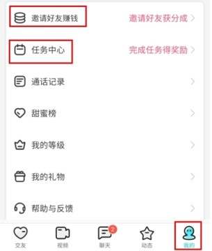 1、在我的页面中点击邀请好友赚钱和任务中心按钮;