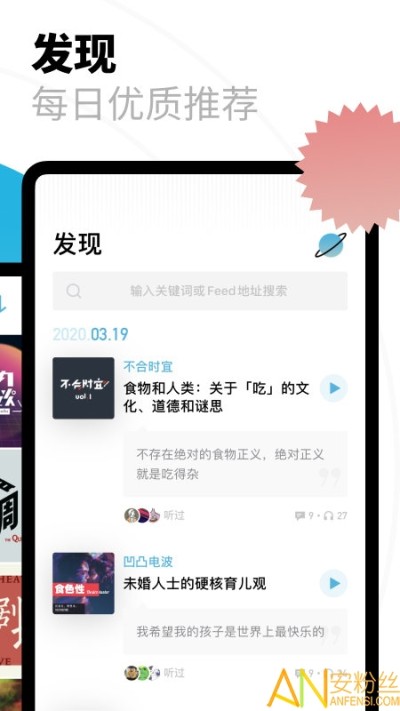 2、每天都有新的播客节目可以自由观看,让用户每天都有新发现。