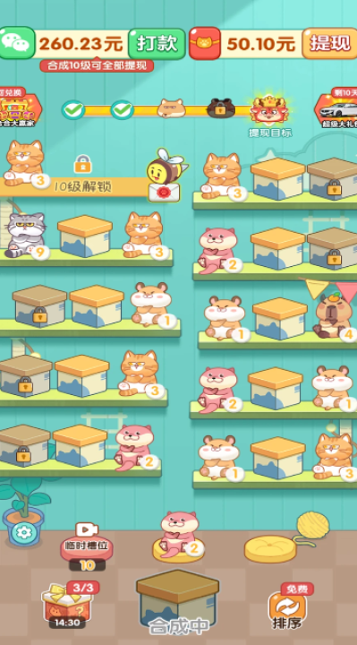萌宠爱合成红包版游戏是一款采用治愈系风格的休闲合成类手游,融入了很多元素,画面可爱,玩法多样,不同类型的萌宠等你去合成,很多的红包奖励等你去领取,同时也可以通过培养和训练来提升宠物的能力,经典的三消游戏模式,趣味的游戏关卡可以自由的选择。