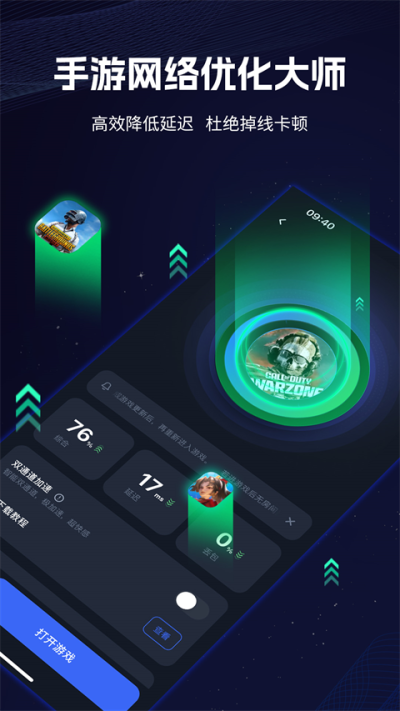 1、高效降低延迟,根据不同网络情况优选加速方案,高强度降低游戏延迟。