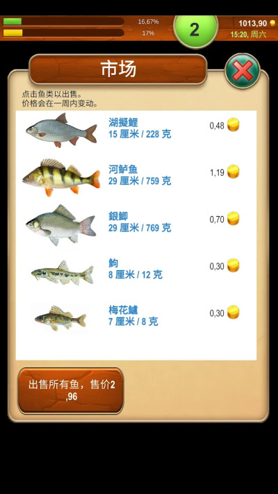5、每条鱼的价格,按照当天的鱼市交易基数为准,因此每天的鱼获也会不同。