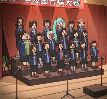 3、合唱队的中间有一个长大嘴巴,面红耳赤的女生,这个人和其他人的调子不一样。