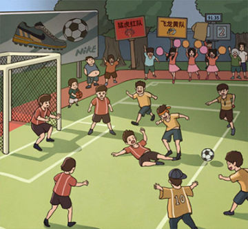 2、穿蓝色衣服的男生,书本里夹着一本漫画书,点击漫画书就可以了。