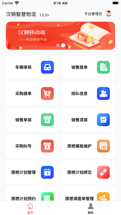 汉钢智慧物流app包含:销售提单预约申请,单装叫号、混装叫号。采购送货单预约申请,叫号。下站业务,内到业务以及特殊车辆管理。从派车开始,到业务出场,这是一个汉钢业务流程监管的小帮手!
