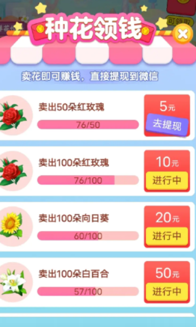 3、牡丹王红包:挑战种植富贵牡丹,成功后一次性获得巨额红包大奖。