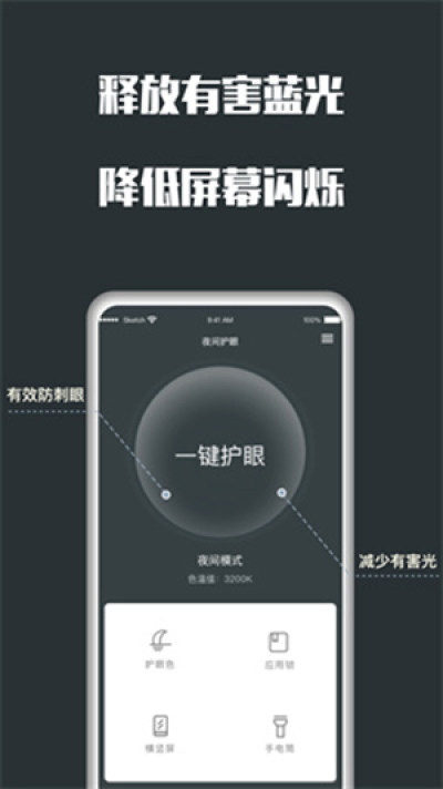 1、防止晚上手机背光刺眼,通过调节屏幕颜色和亮度,有效抵挡刺眼的背光,保护眼睛不受伤害。