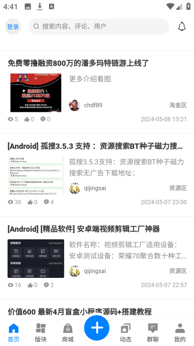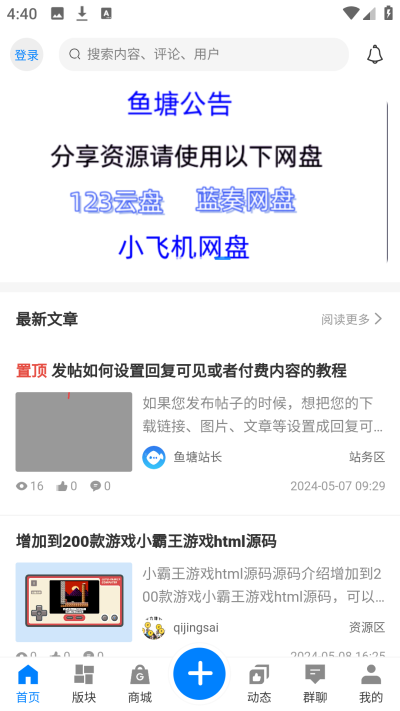 鱼塘社区app是一款网络资源共享技术学习分享交流社区软件,软件界面简洁直观,所有功能一目了然,用户可以在线搜索自己感兴趣的板块进行浏览,找到自己需要的资源下载,对软件感兴趣的话不妨点击下载试试!
