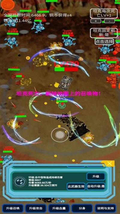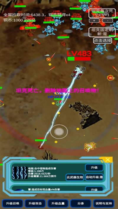 召唤反击战免广告最新版是一款策略塔防手游,游戏里玩家可以不断的挖矿获取资源,提升自己的坦克获取全新的武器,面对四面八方不断进攻的敌人,还有可以解锁不同的召唤物帮助自己战斗,轻松的挂机战斗享受割草刷怪的乐趣,想要体验的小伙伴快来试试吧!