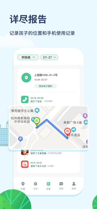 3)该软件提供实时的定位服务功能,家长可以随时查看孩子的位置,确保孩子的安全,并及时了解他们的行踪。