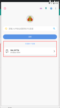 4、此时,我们在新的设备上打开甲壳虫ADB助手,输入被控机的IP地址和端口,就可以连接到手机设备了。