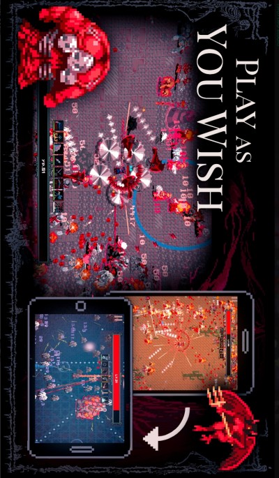 2、从10多个具有独特能力的角色中选择一个来对抗多达400个嗜血的怪物。