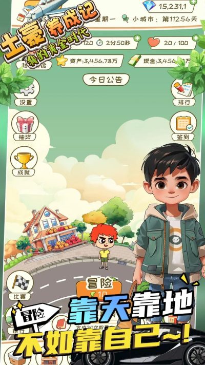 游戏中,你去实现由一个一穷二白的穷小子变成一掷千金的大土豪的梦想。游戏中,处处充满挑战,处处充满机遇。机遇是给有准备的人。抓住机会,实现你人生的逆袭。