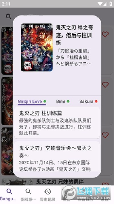 而在追番、新番日历这两个页面点击某一个番剧的时候,只会用Bangumi提供的番剧名进行一次搜索,因此可能会出现无法搜索到的情况。
