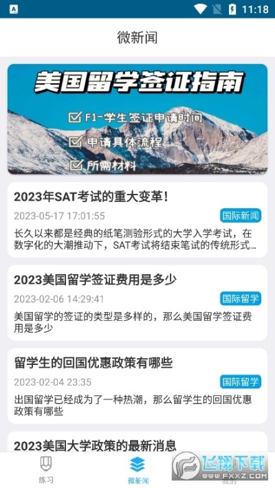 - 文章练习分为阅读和听力部分,用户可以在这里进行英语学习。