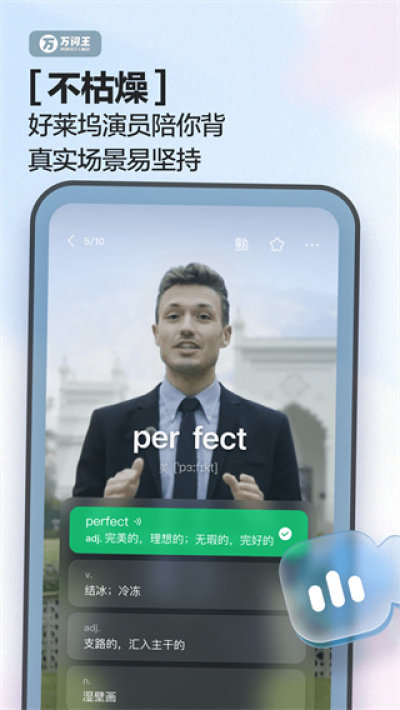 万词王(曾用名完美万词王),万词王真人实景背单词,学好英语,从读准每个单词发音开始。