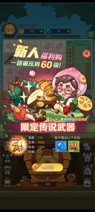 首充任意金额送限定传说武器,一路碾压到60级