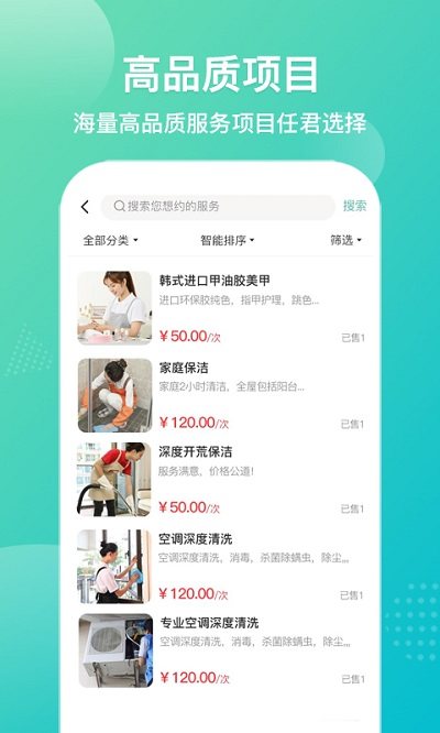 所有的服务项目分为许多不同的类型,可以方便地选择。