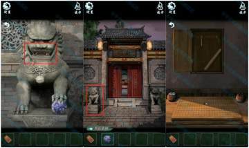 十、之后带着青花瓷球,来到门口,放入左边的石狮子爪子下,获得钥匙,打开上一步对弈后烧毁的画后的柜子里。得到【正屋的钥匙】跟一幅画,后面会用到。