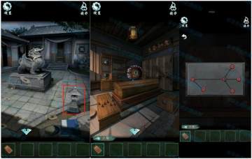 十二、之后来到院子之中,点燃其中的石灯,然后根据石灯亮起的顺序,按压正屋之中箱子的密码锁。然后获得灯笼。