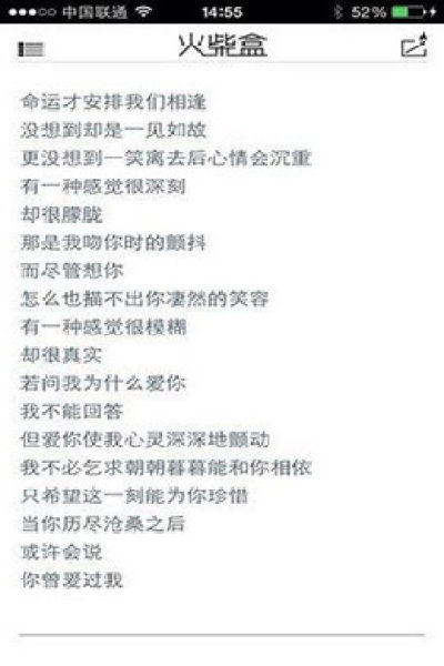 火柴盒是一款文艺气息很浓的手机软件,欣赏各种打动人心的事或物,看腻了糗事、恶搞,来这里,每天用10分钟的细碎时光,点燃内心的一点小光明,让你的每一天都不一样,特别有韵味!
