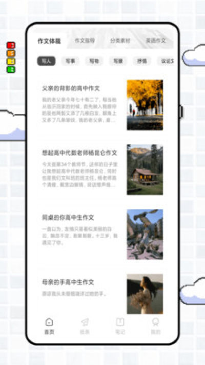【笔记本】:方便用户记录日常写作素材和心得,形成个性化的写作档案。