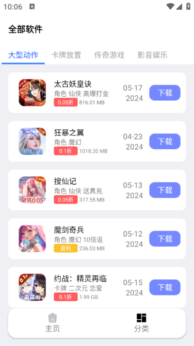 2、有大型动作、卡牌放置、传奇游戏和影音娱乐资源,各种类型应有尽有。
