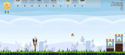 1.调整弹弓的角度和力度,发射不同种类的小鸟,击倒占据自己家园的绿皮猪