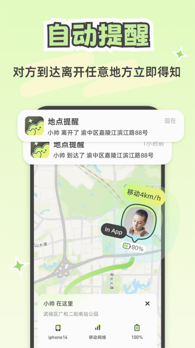 2、多样化提醒:距离提醒、安全区域提醒以及电子围栏提醒,都可以根据自己的需求和喜好进行设置。