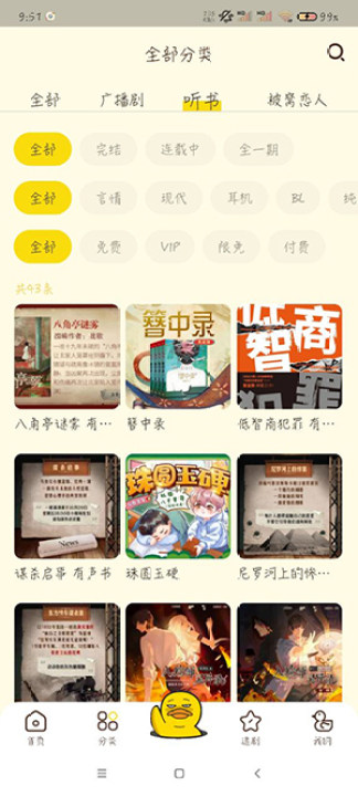 冲鸭FM下载安装,它为用户提供了大量的耽美广播剧资源,并且这些资源都是免费供您聆听的。更值得一提的是,这些广播剧都是完整无删减的版本,确保了您能够享受到原汁原味的听剧体验。无论您偏好何种类型的耽美广播剧,这款APP都能满足您的需求,让您轻松搜索到心仪的剧集。此外,注册登录后,您还可以免费使用更多功能,并享受到众多有声书资源的丰富内容。