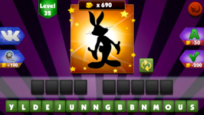 --看系统给出的卡通人物,来猜测其名字,不过蛋疼的是游戏的需要用英文来拼写,所以这款游戏没有汉化的话,估计没多少人愿意玩