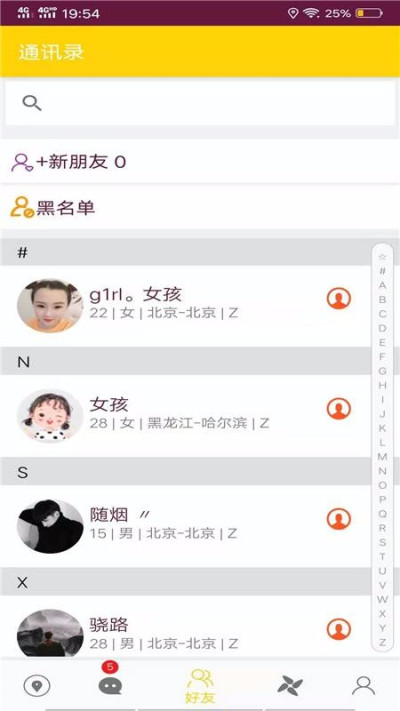 3、好友:按照字母顺序排序