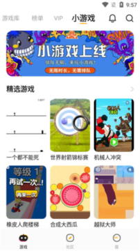 1、游戏排行榜:提供了全面的游戏排行榜,包括热门游戏、新游推荐、评分排行等,可以根据排行榜选择自己喜欢的游戏。