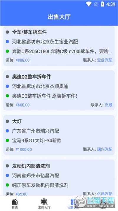 4、用户可以在这里发布自己需要或者出售的配件,遇到合适的可直接沟通购买,并且能够对物流进行实时查看。