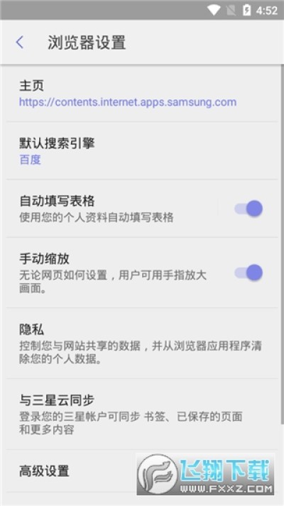 打开三星浏览器设置,做以下两个调整