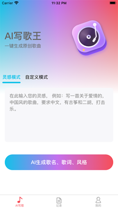软件分为两种模式:灵感模式写歌和自定义模式写歌。