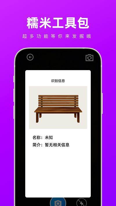 糯米工具包是一款拍摄以及识物的软件,这款软件集合了多种小工具,不但具有拍照的功能,还可以识别各种物体,包括各种植物,动物,建筑等等,可以去除图片上的各种瑕疵,还可以对文档进行编辑。