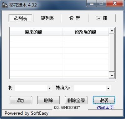 6、如果软件、游戏默认的键位设置不符合你的使用习惯,移花接木便是你的得力助手,轻松更改替换键位,无需修改注册表,即时生效。