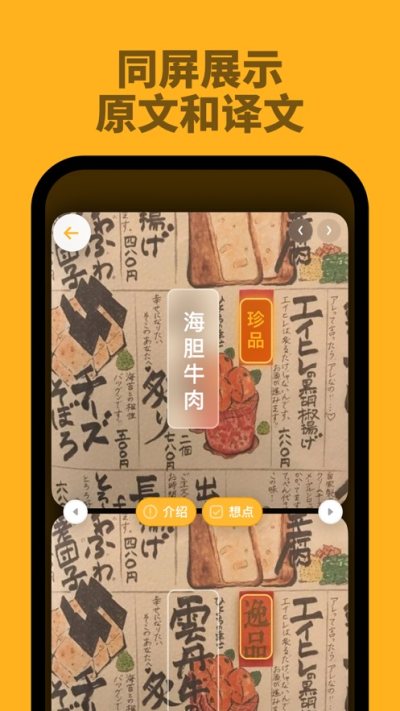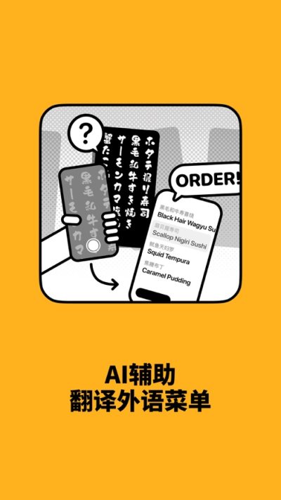 1、支持全球任何语言,各种菜系文字瞬间翻译;