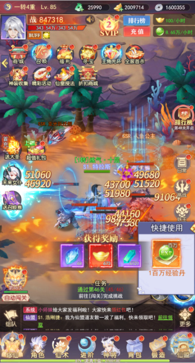 2、传统打怪练级变成了新奇有趣的修仙之途,各种充满趣味玄奇的活动任务穿插其中,全地图的嗜血战斗、酷炫坐骑、超级妖魔、神秘险境更是应有尽有。