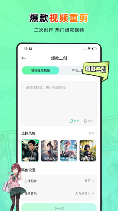2、一键生成高质量视频:无论是文章、链接、视频还是音频,都支持一键混剪的功能使用;