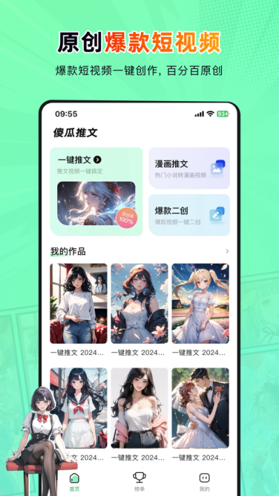 傻瓜推文官方app手机版是一款可以一键创作爆款短视频的软件,用户可以将输入关键词进行编辑制作,将热门小说转为漫画视频,可以快速导出到各大信息流平台上进行推文操作,对软件感兴趣的话不妨点击下载试试!