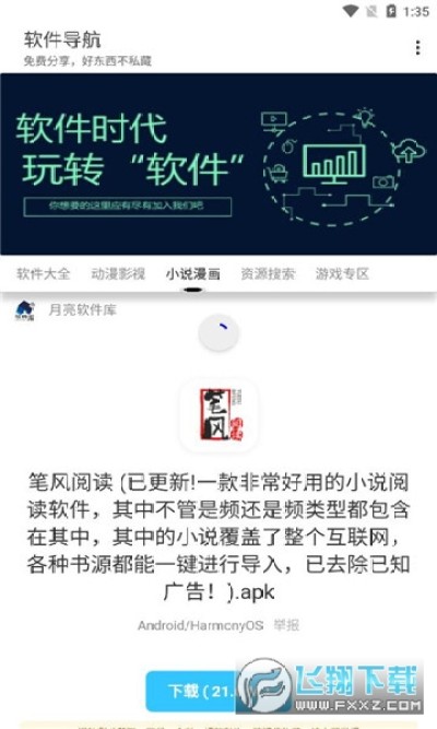 软件导航2.0(修复BUG).apk下载,一款软件库分享平台,基本没有广告弹窗,可以为大家提供丰富的软件资源,涉及小说,漫画,学习,娱乐等等内容,致力于为大家带来更多元化的玩机体验!