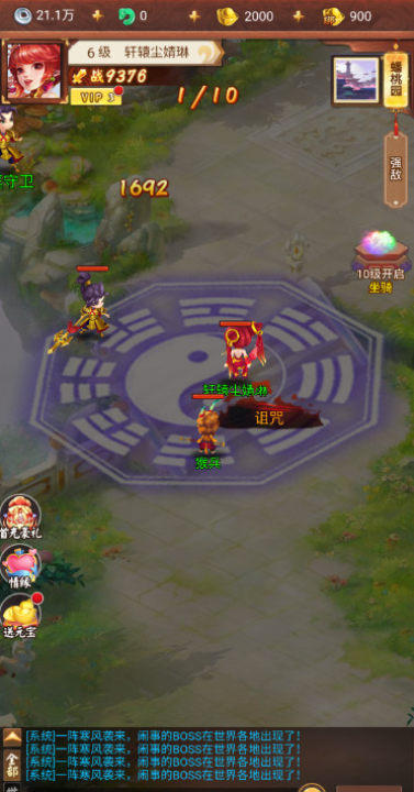 单日折后累充300元:元宝*2000、随机进阶丹*100、随机强化石*100、防御丹*10、命中丹*10、玉皇大帝猎命符*2