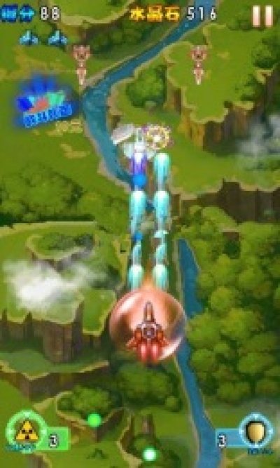 3、消灭敌人后,拾取敌人爆出的金币和道具强化自身战机