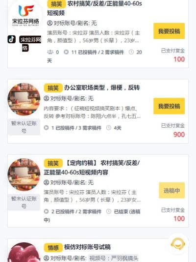 定制或征集特定题材/风格原创剧本,数千编剧帮您策划,平均每剧集100-500元,用于IP打造、企业宣传、品牌营销、信息流广告等