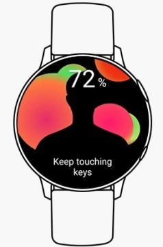 2. 用手指触摸 Galaxy Watch 上的两个电极。