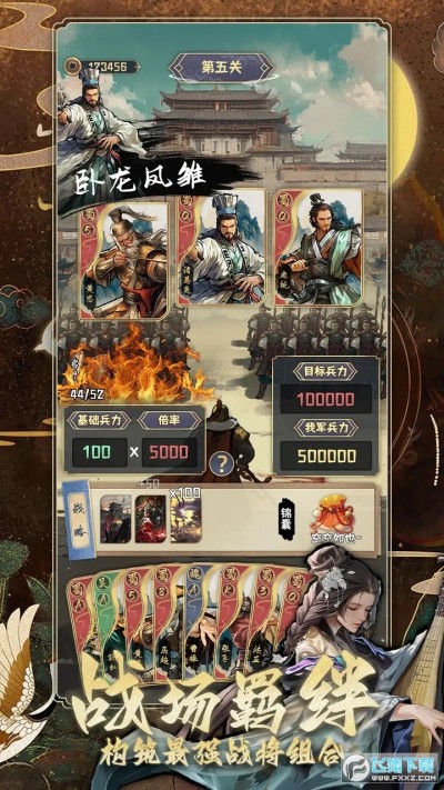 《肉鸽三国》是一款别具匠心的Roguelike卡牌构筑游戏,在游戏中,玩家将化身为一位掌控大局的军神,统揽全局、指挥布阵、英勇破敌。玩法上,将poker的精髓与三国阵营元素相融合,玩家只需合理搭配将牌和战略牌组成阵型,在战后合理分配经济购买卡牌道具强化自己构筑的组合,就能不断打出更高兵力,从而引领自己的军队取得胜利。