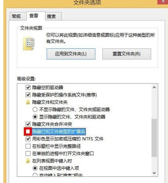 4、合成完成后,文件夹选项——查看——隐藏已知文件类型扩展名不打勾,确定