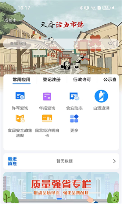 天府活力市场打造四川全省统一开放的全方位市场监管智慧政务掌上服务,提供事前咨询、事项办理、服务评价、投诉建议、政策查询等一站式服务办理平台,形成便捷、开放、精准化、智能化的政务服务体系。